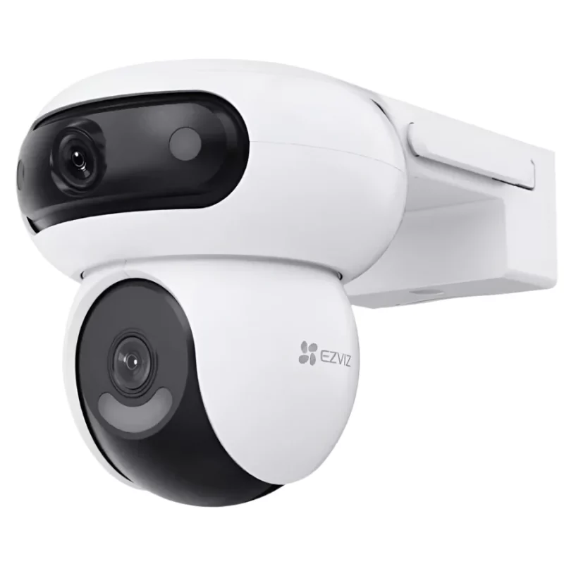 The Ezviz H8c Pro is an 8MP 4K pan & tilt Wi-Fi camera designed for outdoor surveillance. It offers 360° panoramic coverage, color night vision, and AI-powered human/vehicle shape detection. The camera also features auto-tracking, two-way talk, and active defense with a siren and strobe light. It supports microSD card storage up to 512 GB and is weatherproof.
