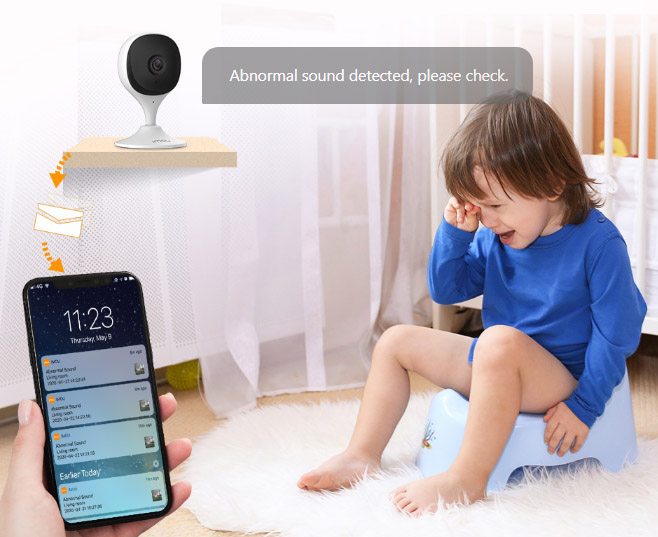 - Sends instant alerts to your smartphone whenever it detects a baby crying or other abnormal sounds, keeping you aware of what’s going on at home from anywhere.